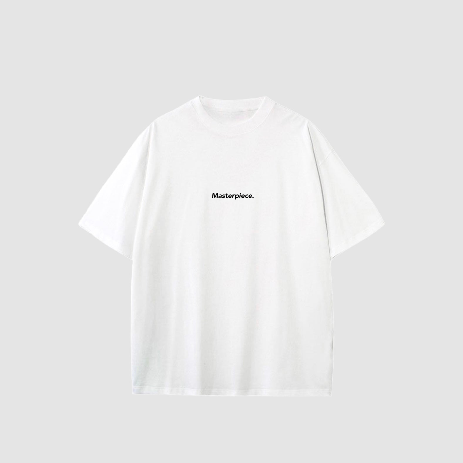 A statement in simplicity. The Masterpiece T-shirt blends clean aesthetics with bold intent. Designed for a relaxed, oversized fit, this piece features a sharp word print that speaks without noise. Crafted from premium, breathable cotton, it ensures all-day comfort with a structured yet effortless drape.